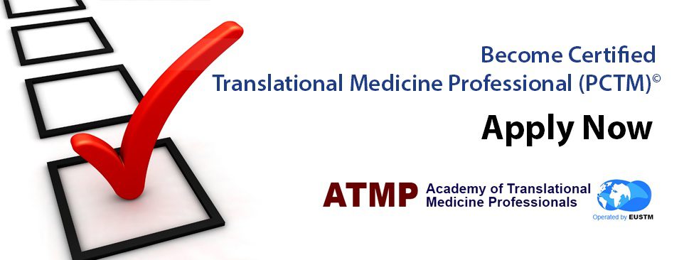 Academy of Translational Medicine Professionals (ATMP) is working to advance the ongoing knowledge and skills of clinicians and scientific professionals at all levels. The Academy’s high quality, standard and ethical training and educational programs ensure that all clinical and scientific professionals achieve excellence in their respective fields. Programs are accredited by the European Society for Translational Medicine (EUSTM).